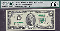 Fr.-1936* 1995 $2 Atlanta Ser. F00000082* PMG-66EPQ