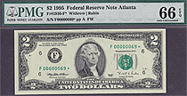Fr.-1936* 1995 $2 Atlanta Ser. F00000083* PMG 66EPQ