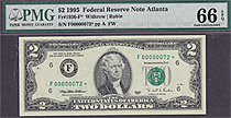 Fr.-1936* 1995 $2 Atlanta Ser. F00000067* PCGS-66PPQ