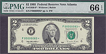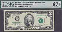 Fr.-1936* 1995 $2 Atlanta Ser. F00000058* PCGS-65PPQ