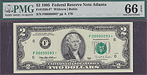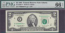 Fr.-1936* 1995 $2 Atlanta Ser. F00000083* PMG 66EPQ