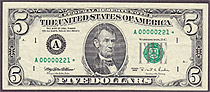 Fr.-1027* 1995 $5 Boston FRN Ser. A00000221* Raw