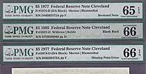 Fr.-1974 1977 $5 Clev.(3 set error note) D56592472-4A PMG 65/66/65 All EPQ