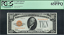 This IS a problem free GEM 1928 $10 Gold Certificate in a PMG-65EPQ holder. The serial number is A76934489A. These $10 Gold Certs are getting harder to find at a decent price. This one is priced to se...