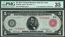 Fr.-839a 1914 $5 St. Louis FRN (RED SEAL) Ser. H175282A PMG-VF35