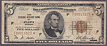 Fr.-1850F* 1929 $5 FRBN Atlanta Star Ser. # F00015825* Fine
