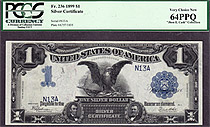 This 1899 $1 Black Eagle Silver Cert. Ser # "N13A" is a superb note. The lucky # "13" is a famous lucky charm for many countries. It WAS graded by t...