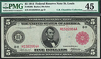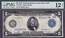 The first series was the issue of 1914 and was issued with Red Seal and Blue Seals. They were issued in denominations of $5, $10, $20, $50 and $100. The Red Seals are a lot more valuable than the Blue seals.