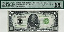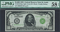 This is a very nice high grade Fr.-2210H or a 1928 $1,000 FRN from the popular St Louis District and features the scarcer Light Green Seal (LGS) varie...
