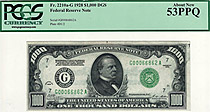 This is a very nice example of a 1928 $1,000 FRN from the ever popular Chicago district. The serial number is G00066862A and is in a conservative PCGS...