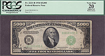 7/3/2012---- THIS NOTE IS IN A PCGS-40 HOLDER net. This is a brand new 1934 Philadelphia $5,000 FRN that just came out of a clients safety deposit box...