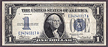The small-size Silver Certificates were issued under the Act of June 4th, 1963. They were issued in $1, $5 and $10 denominations and are all now obsolete. They all featured a Blue Seal. On the $1 1935A series, an "R" and "S" was used as a control letter. These notes were printed with a different type of paper the government was experimenting with. On June 24th, 1968 by Congressional Act. the Treasury halted the practice of redeeming Silver Certificates with silver bullion. The motto "In God we trust" begin appearing on the reverse of the 1935G series. The 1935G however appears both with and without the motto.