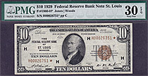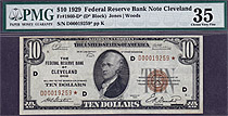 Here is a great 1929 $10 Cleveland FRBN Star in a PMG VF-35 holder. It faces up nicer than the PMG grade. Check the wide back margins. You can still s...