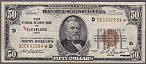 Fr.-1880D* 1929 $50 Cleveland FRBN Star Ser. # D00002284* VF