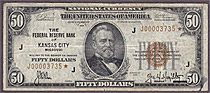 Fr.-1880J* 1929 $50 Kansas City FRBN Star Ser. # J00003735* VF