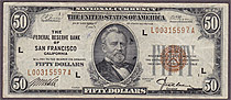 Fr.-1880 1929 $50 San Francisco FRBN Ser. L00315597A Raw