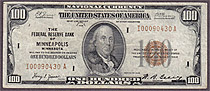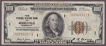 A nice circulated example of a 1929 $100 Federal Reserve Bank Note from the ever tough Minneapolis district. There are no rips, tears of pinholes. A s...