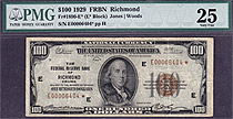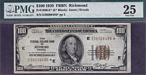 Here is a 1929 $100 Richmond FRBN Star Note. The serial number is E00006404*. PMG VF-25. There are only 9 Richmond $100 FRBN stars known. This note is...
