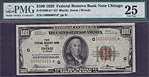 Here is a 1929 $100 FRBN Star from the Chicago District. There are only 14 known. Serial # G00000616* PMG VF-25. PMG has only graded 7 of these notes....