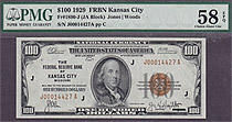 Fr.-1890J 1929 $100 Kansas City FRBN $ 000014427A PMG-58EPQ