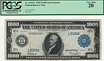 This is a nice clean problem free 1918 $1,000 Frederal Reserve Note from the popular San Francisco district. I have owned many of these 1918 $500 and ...