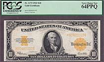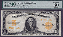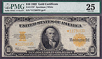 How about a 1922 $10 Gold Certificate Star note. This is a very clean lightly circulated example with no problems at all. It carries the PMG EPQ notat...