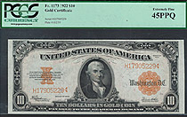 This is a new pick up at the last show. It is a 1922 $10 Gold Certificate in a PCGS-45PPQ holder. I only buy notes that are totally original with eith...