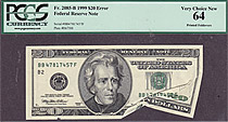 Fr.-2085 1999 $20 FRN (Crushed Before 3rd Printing Error) Ser. # BB47817457F PCGS-64