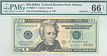 Fr.-2091F 2004A $20 Atlanta Ser. # GF44444444B PMG-66EPQ