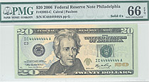 Fr.-2093C 2006 $20 Philadelphia Ser. # IC44444444A PMG-66EPQ