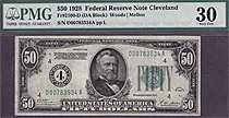 This is a 1928 $50 Cleveland is a very scarce note with only 48,000 printed. The serial number is D00783534A and it is in a PMG VF-30 holder. All 1928...
