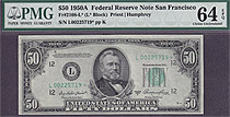 Here is a Very, Very nice 1950A Green Seal $50 FRN Star from San Francisco. Not only did PMG grade it as a PMG-64EPQ but they also notated "Great Embo...