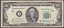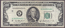 Fr.-2159* 1950-B $100 Kansas City FRN Ser. J00337645* F/VF