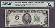 Here is a 1950E $100 FRN New York star. The serial number is B01368317* and it is in a PMG VF-35 holder. Only 288,000 were printed. This note was form...