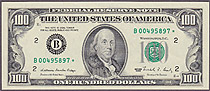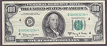 Here is a nice 1950D* $100 Chicago star note. The serial number is G00517413*. There are no rips, tear or pinholes. All 1950D* stars are very hard to ...