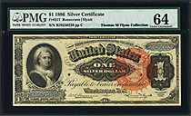 This is an outstanding Martha Note or an 1886 $1 Silver Certificate holdered in a PMG-64 holder. The paper is nice with the bright vivid Large Red Sp...