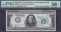 This is a very n ice 1934A $500 FRN in a PMG-65PPQ holder. It is from the New York District. It is well centered and has the same vivid green inks as ...