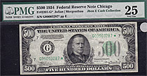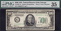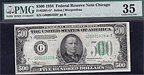Here is a very nice totally problem free 1934A $500 bill from the Chicago district. It has never been pressed or cleaned. It is housed in a PMG VF-35E...
