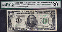 This is a stunning 1934A $500 Federal Reserve Note from the New York District. It is in a PMG-64EPQ holder. This 1934A $500 FRN has no rips, tears, pi...