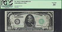 This is a Fr.-2211 or a 1934 $1,000 Chicago FRN with Serial no. G00103274A. It resides in a PCGS VF-35 holder. As you view the large scans you will no...
