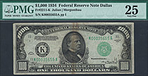 Fr.-2211 1934 $1,000 Dallas FRN Ser. K00035655A PMG VF-25