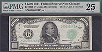 This is another nice 1934 $1,000 bill from the Chicago district. The serial number is G00106128A and is in a PMG-35 holder. It is so difficult these d...