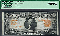 This is the scarcer 1906 Fr-1184 variety, not to be confused with the Fr-1185 variety 1906 $20 Gold Certificate. It was a one year issue. This is one ...
