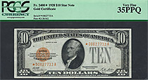 This is a very nice and original 1928 $10 Gold Certificate STAR note. What make it so important is that it is a PCGS-35PPQ holder. Most of these notes...