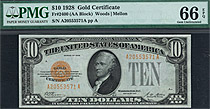 Nice 1928 $10 Gold certificate in a PMG-66EPQ. However I sold this note before I could even get it on the website....