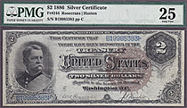 Fr.-244 1886 $2 Silver Certificate Ser. B19985383 PMG VF-25