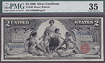 This is an 1896 $2 Silver Certificate commonly referred to as the $2 Educational Note. It features a vignette of science presenting steam and electric...