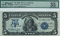 This is a super nice 1899 $5 Silver Certificate Chief note. It is one of the earlier PMG notes before they used the EPQ designator. PMG has notated on...