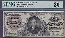 This is the famous 1886 $20 Silver certifiate commonly refered to as the Manning Note or the Diamond Back note because of the back design is in a diam...