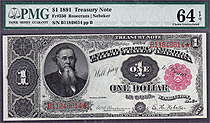 Fr.-350 1891 $1 Treasury Note PMG-64EPQ Serial # B11848614